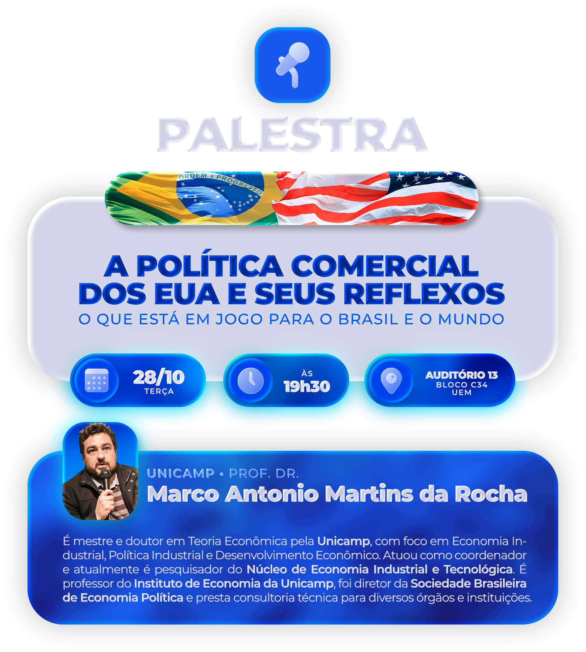 | 4 | Concentração industrial: uma breve revisão conceitual/metodológica | Rinaldo Aparecido Galte | Sala 114, horário 13:30-15:00, dia 30/10 |